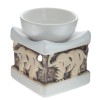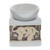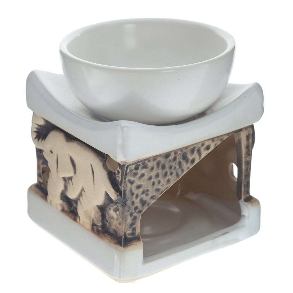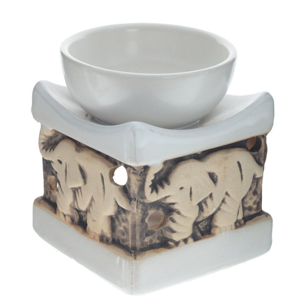 Аромалампа, выполненная из керамики. Изделие имеет квадратную форму с углублением на верхней части для размещения ароматических масел. Лампа украшена художественной вставкой с изображением слона — этот элемент придаёт изделию особый этнический и уютный вид. Керамика обладает гладкой глянцевой поверхностью, благодаря чему аромалампа легко очищается и сохраняет свой привлекательный внешний вид. Оригинальный дизайн и нейтральные цвета позволят гармонично вписать её в любой интерьер — будь то гостиная, спальня или ванная комната. Такая аромалампа станет не только функциональным аксессуаром для ароматерапии и релаксации, но и интересным декоративным элементом, создающим атмосферу уюта и тепла в вашем доме.