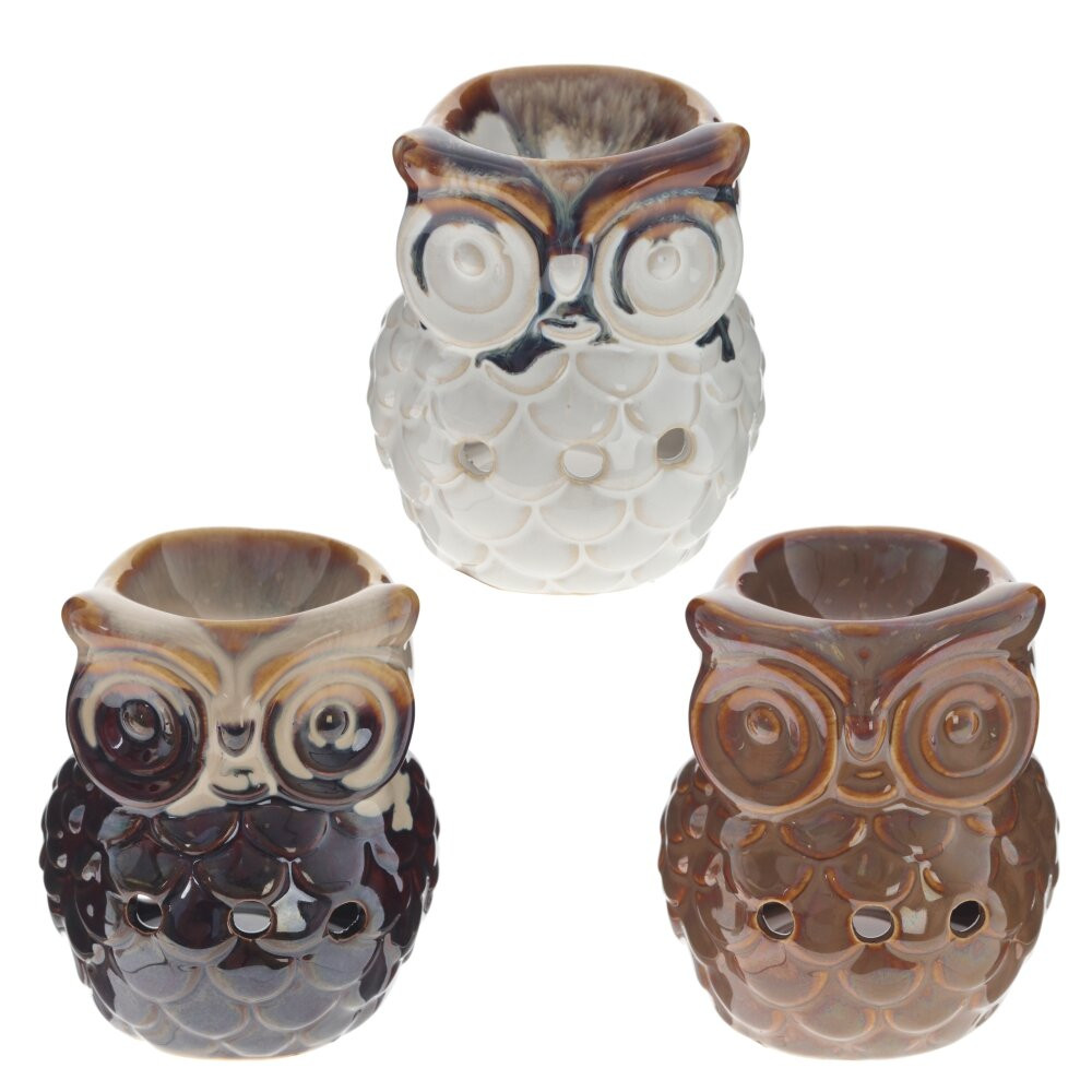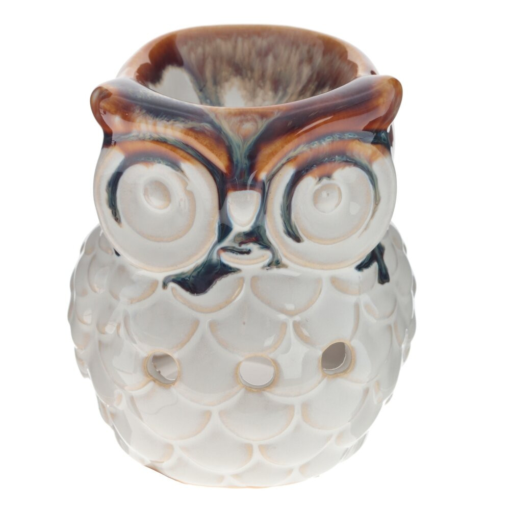 Аромалампа из керамики, выполненная в форме совы, станет не только практичным аксессуаром для вашего дома, но и оригинальным элементом декора. Гладкая глазурованная поверхность придает изделию элегантный блеск. Такая аромалампа предназначена для использования с ароматическими маслами или восковыми мелками. В верхнюю чашу наливается немного воды с несколькими каплями масла, а внутрь лампы ставится свеча-таблетка. Приятный аромат быстро распространяется по помещению, создавая уютную атмосферу и поднимая настроение. Керамическая аромалампа отличается прочностью и долговечностью, легко очищается и подходит для любого интерьера. Представлено в трех вариантах.