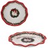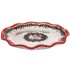 Тарелка классической формы с оригинальным акцентом – волнистым краем бортиков. Контрастная красная полоса подчеркивает необычность силуэта и вносит в дизайн торжественную нотку. На белой керамике выразительно смотрятся яркие изображения: нарядные гирлянды и венок с Сантой.