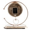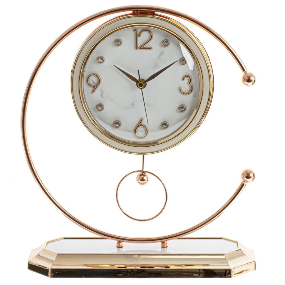 Стильные настольные часы круглой формы прекрасно дополнят ваш интерьер. Циферблат диаметром 15 см, имеет три стрелки - часовая, минутная, секундная. Механизм - кварцевый. Цифры - арабские. Работают от двух батареек АА ( не прилагаются).