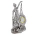 Настольные часы «Фемида»– эффектный декоративный аксессуар, который подчеркнёт статус и утончённый вкус владельца. Корпус выполнен из прочных полимерных материалов под старинное серебро, в виде фигурки богини правосудия с повязкой на глазах, мечом и весами. Круглый часовой механизм с белым циферблатом и золотистым ободком гармонично вписан в композицию и удобно читается на расстоянии. Такое изделие станет оригинальным подарком юристу, судье, нотариусу, преподавателю права или деловому партнёру, украсит рабочий стол в кабинете, приёмной или домашнем офисе. Часы «Фемида» сочетают практичность и символический смысл, напоминая о ценности справедливости и неумолимом течении времени. Диаметр циферблата 3,5 см. Работают от одной батарейки А377.