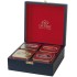Набор из четырех видов (по 75 г) цейлонского крупнолистового зеленого и черного чая в металлических банках, упакованных в квадратную синюю деревянную шкатулку. В набор входят чаи "Зеленый", "Английский завтрак", "Цейлон" и "Эрл Грей". Внутри шкатулка отделана красным бархатом с золотым тиснением. Способ заваривания: заваривать одну чайную ложку чая на одну чашку горячей, но не кипящей воды. Дать настояться 2-3 мин. зеленому чаю и 4-5 мин. черному чаю. Пить свежезаваренным.