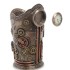 Оригинальный декантер с подставкой темно-бронзового цвета, украшенной часами. Декантер представляет собой графин, предназначенный для декантации и подачи вина. Зрелые вина нуждаются в декантации для отделения пигментационного осадка, выпавшего со временем хранения на дно бутылки. При переливании из бутылки в декантер, сомелье традиционно отслеживает приближение осадка к горлышку бутылки. После проведения непродолжительного времени в декантере вино осторожно переливают в бокалы, оставляя на дне декантера осадок, попавший из бутылки.