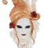 Изысканная декоративная маска в венецианском стиле, выполнена в белом цвете. Верх маски украшен длинными белыми перьями и красными маками.