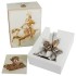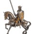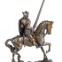 Великолепная декоративная статуэтка в виде средневекового рыцаря в латах. Рыцарь изображен на коне, в правой руке он держит длинное копье, в левой руке - щит, украшенный изображением золотого дракона.