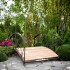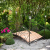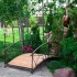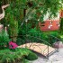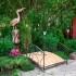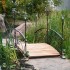 Изящный кованый мостик с подсветкой, декорированный оригинальными узорами. Мостик прекрасно подойдет под любой стиль садового ландшафта.
