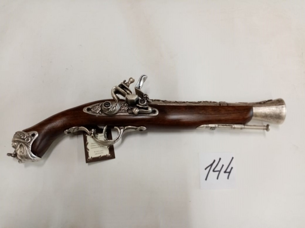 Оригинальная фигурка старинного пистолета дополнит интерьер библиотеки или рабочего кабинета. Приятный подарок для тех, кто увлекается коллекционированием декоративного оружия.