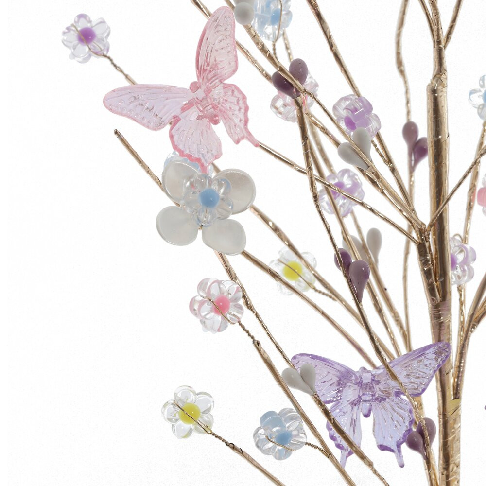 Искусственное пасхальное дерево – изящное весеннее украшение для дома, которое создаст атмосферу праздника даже в небольшой комнате. На тонких золотистых веточках расположены декоративные бутоны, нежные цветы и бабочки в пастельных оттенках розового, сиреневого, голубого и жёлтого. Лёгкий глянец и прозрачные элементы красиво переливаются при дневном и искусственном освещении, напоминая первые весенние капли. Дерево установлено на устойчивой круглой подставке, его удобно разместить на праздничном столе, подоконнике, каминной полке или в детской. Композиция не требует ухода, не осыпается и будет радовать вас не один сезон. Идеальный декор для оформления пасхального уголка, фотозоны или подарка близким.