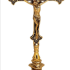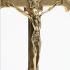 Интерьерный крест ручной работы с изображением распятия Иисуса Христа располагается на подставке. Изделие прекрасно украсит дом верующего человека и станет его оберегом.