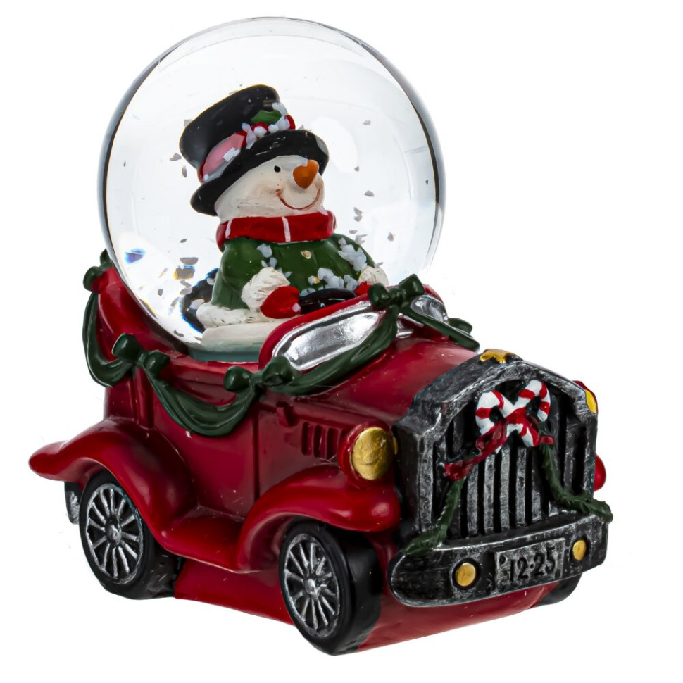 Фигурка декор в стекл шаре "Снеговик на машине", D4,5 см, L8 W4,5 H7,5 см, 2в.