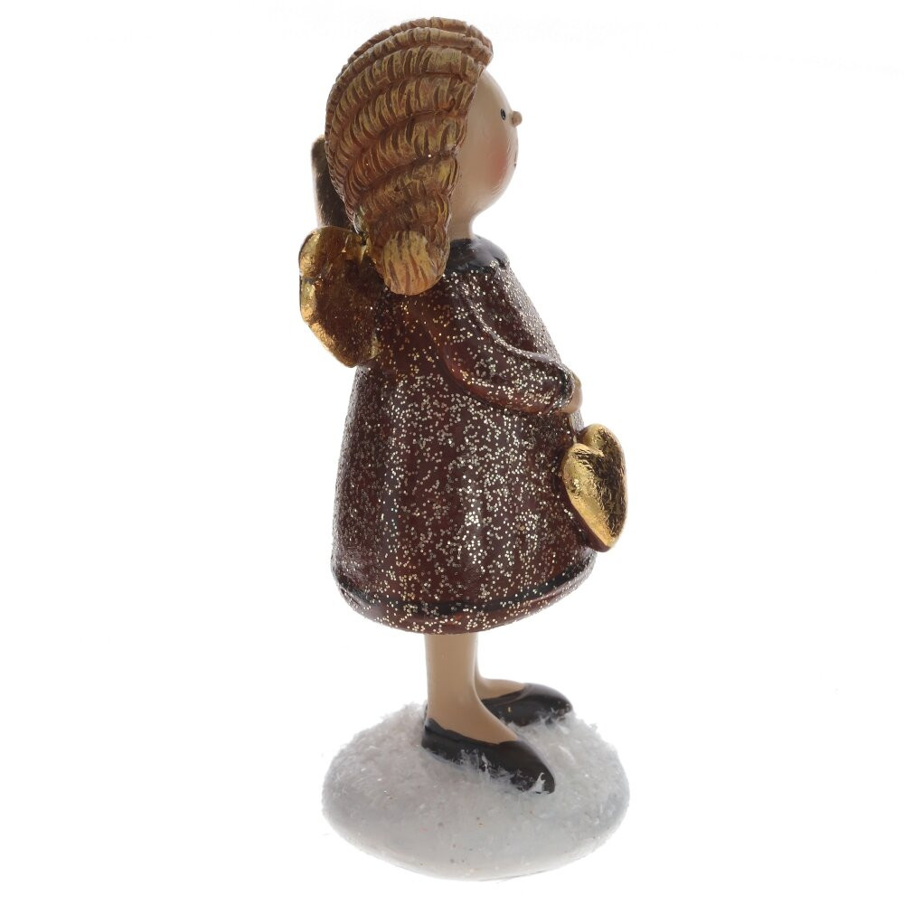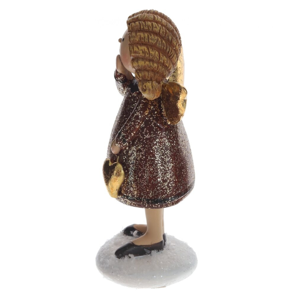Декоративная фигурка "Ангел" представляет собой милую девочку-ангела с забавными косичками и нарядным платьем. Её золотые крылышки сверкают, придавая образу волшебства, а в руках она держит золотое сердечко, символизирующее любовь и заботу. Эта фигурка станет прекрасным сувениром или подарком к Рождеству и Новому году, привнося в ваш дом атмосферу уюта и радости. Добавьте её в праздничный декор или подарите близким, чтобы поделиться теплом и волшебством этого радостного времени.