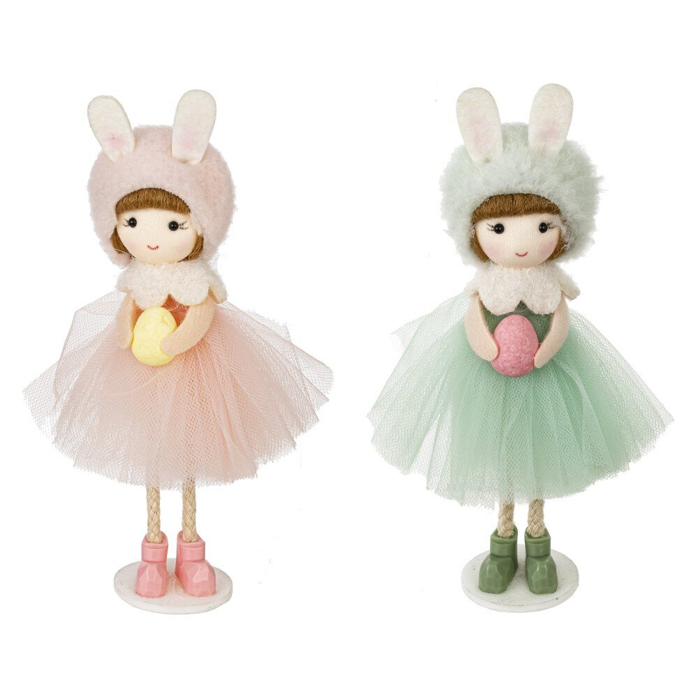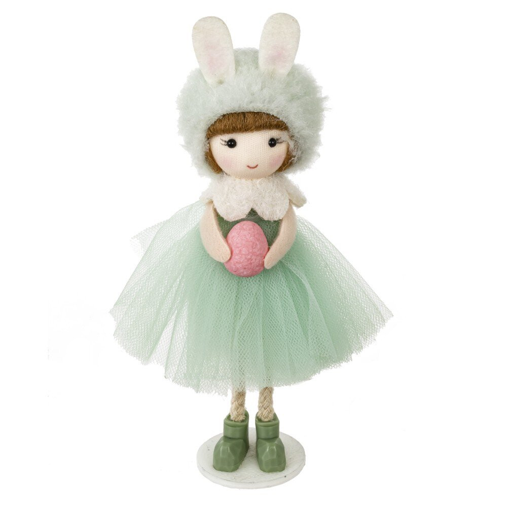 Эта очаровательная пасхальная фигурка выполнена из комбинированных материалов: дерева, полимеров и текстиля. Она представляет собой изящную куколку в нежном платье, с милой пушистой шапочкой, украшенной заячьими ушками. В руках фигурка держит пасхальное яйцо, символизирующее праздник. Ткани, использованные в одежде, создают эффект лёгкости и воздушности, а аккуратная роспись лица придаёт кукле живость и нежное выражение. Деревянные элементы, такие как основа и детали ножек, добавляют изделию устойчивость. Благодаря гармоничному сочетанию материалов и цветов, фигурка станет прекрасным украшением пасхального интерьера, нежным декоративным элементом, символизирующим весну, обновление и тепло семейного праздника. Она идеально подойдет как для коллекционеров, так и для любителей уютного декора в праздничные дни. Представлено в двух вариантах.