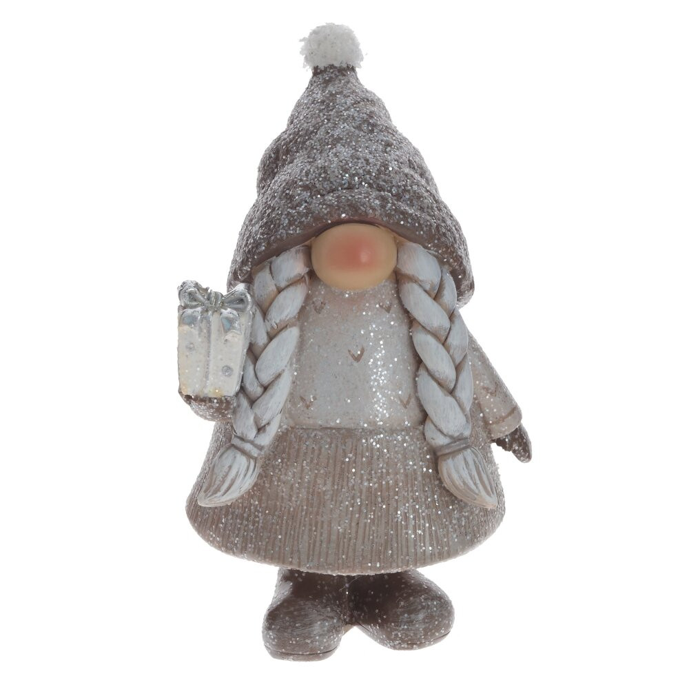 Декоративная фигурка "Гном" — это очаровательное украшение для вашего интерьера, выполненное из полистоуна. Фигурка представлена в двух вариантах. Один гном выполнен с длинной белой бородой и вязаной шапкой, а другой — с косичками и подарком в руках. Эти милые лесные персонажи, покрытые легким шиммером, добавят уюта и праздничного настроения в ваш дом, идеально подходя для новогоднего декора или в качестве милого подарка.