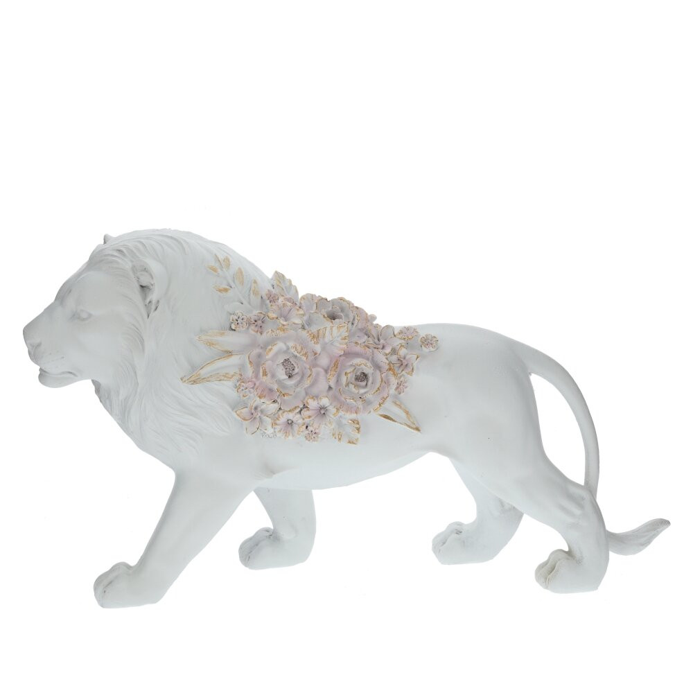 Декоративная фигурка «Лев» – элегантный акцент для современного интерьера. Фигура хищника выполнена из прочных полимерных материалов и покрыта матовым белым слоем, подчёркивающим детали гривы и мускулистого тела. Спину льва украшает объёмная композиция из нежных цветов пастельных оттенков с тонким золотистым патинированием, которая смягчает образ и придаёт ему изысканность. Фигурка гармонично впишется в гостиную, спальню или кабинет, подчеркнёт утончённый вкус хозяина и станет удачным подарком для ценителей стильного декора.