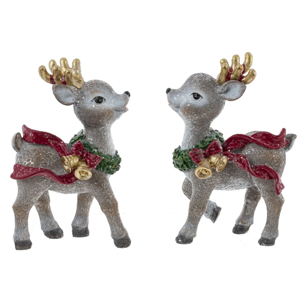 Позвольте праздничному волшебству войти в ваш дом с очаровательной фигуркой оленёнка, которая станет прекрасным украшением новогоднего декора! Этот милый оленёнок, словно сошедший с рождественской открытки, сделает ваш дом по-настоящему праздничным. Его рожки декорированы золотым напылением , а на шее новогодний венок с золотыми колокольчиками.