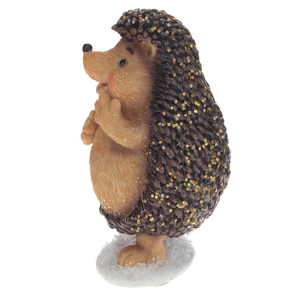 Фигурка декоративная "Ёжик" - это очаровательный новогодний сувенир, который добавит уюта и волшебства в ваш дом. Симпатичный ёжик в коричневом цвете, его колючки усыпаны блестящим золотым глиттером, который красиво переливается на свету. Отличная детализация передает каждую черту, и фигурку хочется рассматривать снова и снова. Эта фигурка станет отличным украшением для вашего праздничного интерьера. Представлена в двух вариантах.