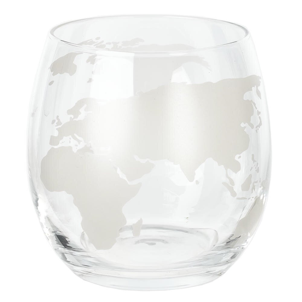 Оригинальный набор для напитков в виде земного шара: графин «Глобус» объёмом 950 мл на устойчивой деревянной подставке и два круглых стакана по 300 мл. Сферический графин выполнен из прозрачного стекла с матовым рисунком континентов и украшен миниатюрным стеклянным кораблём внутри. Герметичная стеклянная пробка с уплотнителем сохраняет аромат виски, коньяка или ликёра. Подставка из тёмного дерева подчёркивает форму глобуса и делает предмет эффектным акцентом на столе или в кабинете. Стаканы повторяют тему карты мира, удобно лежат в руке. Подарочный, элегантный и практичный комплект из стекла и дерева для ценителей путешествий и красивой сервировки.