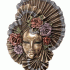 Великолепная карнавальная маска, ручной работы, выполнена в золотисто-черной цветовой гамме и дополнена красными деталями. По бокам маска декорирована роскошной веерной драпировкой и изумительными бутонами пионов.