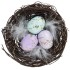 Это декоративное гнездо станет отличным украшением светлых пасхальных дней. Оно как нельзя лучше подходит к весеннему настроению и будет ярким пятном в интерьере. Состоит из декоративных яиц и перьев.