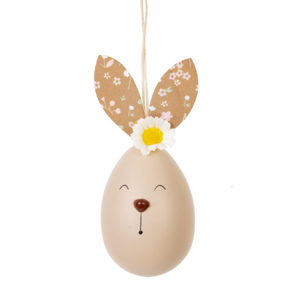 Подвесное декоративное изделие «Яйцо» – очаровательный пасхальный аксессуар для оформления дома и праздничной композиции. Нежное яйцо с нарисованной мордочкой превращено в забавного зайчика: сверху его украшают большие ушки из ткани с цветочным принтом и миниатюрный цветок-ромашка. За счёт тонкого шнурка декор легко подвесить на ветку, дверь, окно, люстру, праздничный венок или пасхальное дерево. Лаконичный дизайн в мягких, естественных тонах делает украшение уместным как в классическом, так и в современном интерьере. Такое «яичко-зайчик» станет милым акцентом для сервировки стола, оформления детской, фотозоны и приятным сувениром к светлому празднику Пасхи для детей и взрослых. Представлено в трех вариантах.