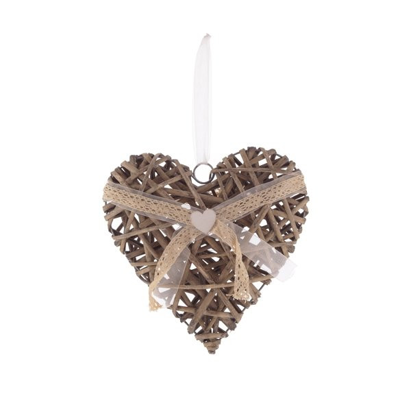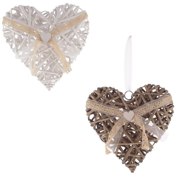 Декоративное изделие в виде сердца сплетено из ивовых прутьев и украшено тесьмой. Прекрасно подойдет для декорирования интерьерных композиций, венков, гирлянд и новогодней ели. Представлено в двух вариантах.