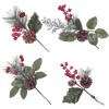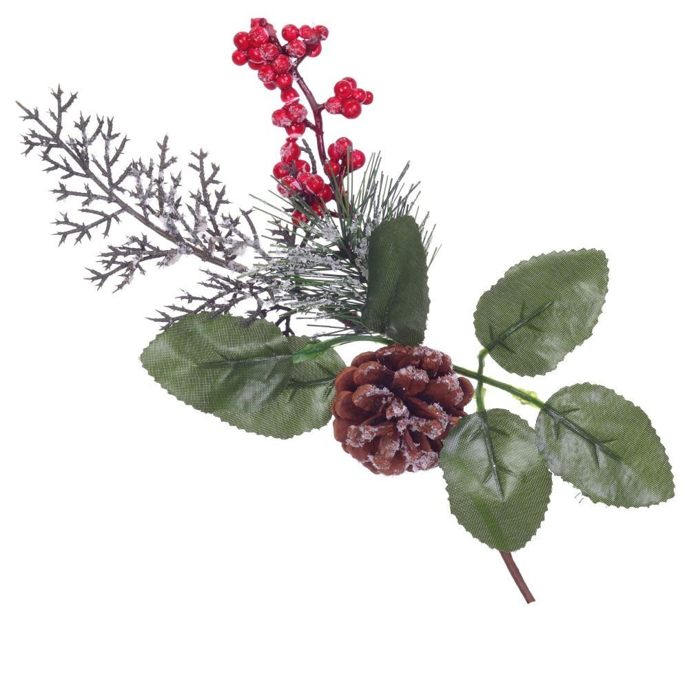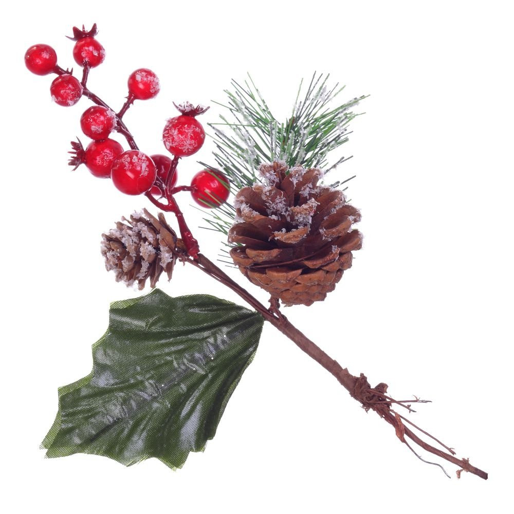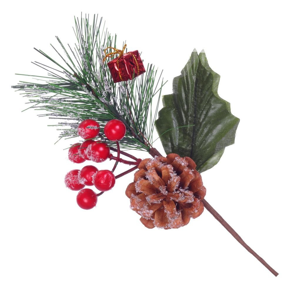 Ветка с листьями, шишкой и ягодами – настоящая находка для новогоднего декора. Станет отличным самостоятельным украшением, а также прекрасно впишется в любую праздничную композицию. Представлена в четырех вариантах.