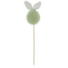 Нежное пасхальное украшение – декоративная вставка «Яйцо» на деревянной шпажке. Объёмное яйцо выполнено из полимерного материала и декорировано мягким текстильным покрытием, напоминающим вязаную фактуру. Забавные ушки кролика придают изделию игривый, весенний характер. Вставку удобно использовать для оформления пасхальных композиций, букетов, корзин с угощениями, подарочных наборов или сервировки стола. Лёгкая и прочная, она органично сочетается с живыми цветами, зеленью и другими сезонными декорациями, создавая атмосферу уюта и праздника в доме. Представлено в трех вариантах.