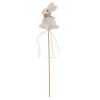 Декоративная вставка «Гнездо пасхальное» — нежный пасхальный аксессуар в виде зайчика на деревянной палочке. Фигурка выполнена из полимерных и текстильных материалов, украшена бантиком и легкими лентами, которые красиво струятся и создают ощущение легкости. Вставку удобно использовать для оформления пасхальной корзины, композиции с яйцами и куличами, цветочных горшков, букетов или праздничного стола. Идеальное решение для создания уютной атмосферы и акцентного декора к светлому празднику Пасхи. представлено в четырех вариантах.