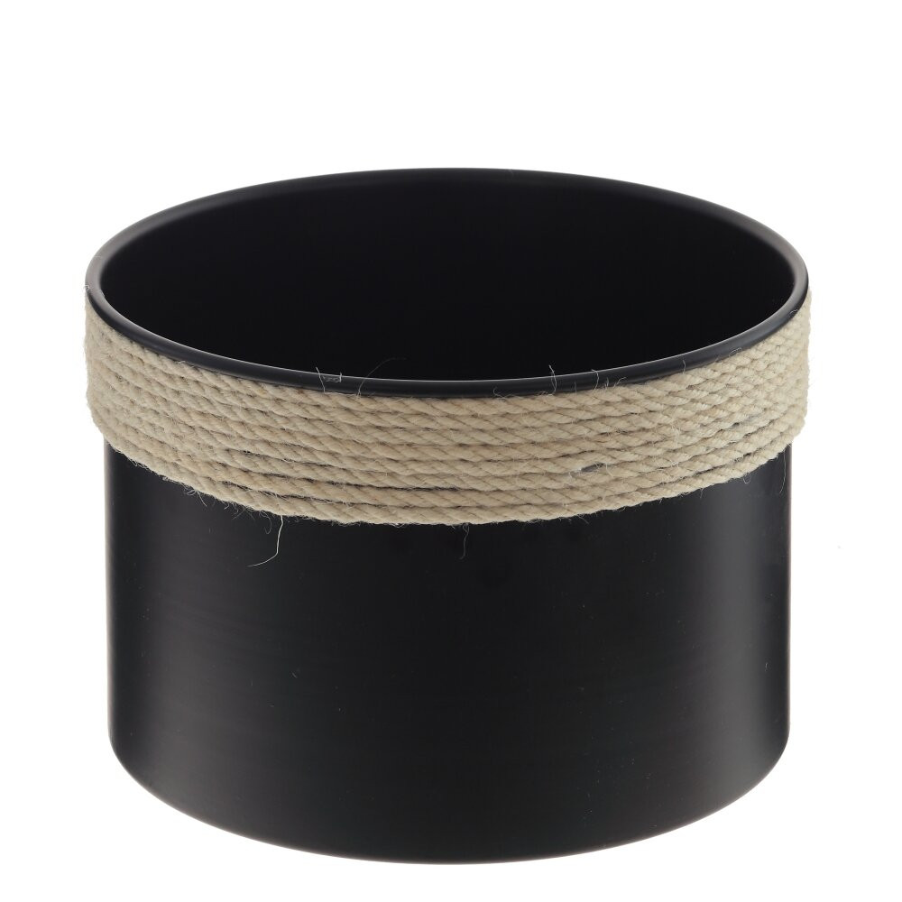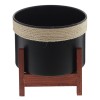 Стильное кашпо, выполненное из комбинации нескольких материалов — металла, дерева и текстильных элементов. Основная часть кашпо изготовлена из прочного чёрного металла, что делает изделие долговечным и устойчивым к внешним воздействиям. Верхний край украшен декором из толстой верёвки бежевого цвета, что придаёт изделию особую изюминку и добавляет ощущение уюта. Подставка для кашпо выполнена из натурального дерева, благодаря чему конструкция смотрится надёжно и устойчиво, а также гармонично впишется в интерьер, оформленный в скандинавском или эко-стиле. Такое кашпо станет отличным элементом декора и прекрасно подойдёт для размещения комнатных растений, при этом сочетание материалов делает его универсальным решением как для дома, так и для офиса.