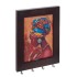 Ключница открытого типа с четырьмя крючками, изготовлена из МДФ. Цвет рамки - коричневый. Центральная часть с изображением африканской красавицы в ярком головном уборе. Крепится на стену с помощью двух металлических петелек.