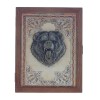 Ключница закрытого типа с пятью крючками. Цвет коричневый с декором в виде головы медведя. Внутри отделана тканью под бархат. Закрывается на магнитную защелку. Крепится на стену с помощью двух металлических петелек.