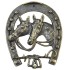 Красивая интерьерная ключница выполнена в виде подковы с двумя лошадьми. Оригинальная ключница станет изюминкой интерьера прихожей и поможет держать ключи в полном порядке.