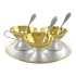 Красивый кофейный набор из мельхиора от завода "Мстерский ювелир". В набор входят 3 чашки с ложечками и поднос. Чашки набора украшены позолоченным рисунком. Изделия покрыты тонким слоем серебра. Набор безусловно станет прекрасным подарком на любое торжество