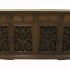 Деревянный комод с двумя секциями (по две резные дверцы на каждую) и четырьмя ящиками. Материал – тиковое дерево, ценная порода древесины, прочная, твердая, устойчивая к загниванию, к воздействию влаги и …огня. Тик загорается гораздо труднее, чем большинство других древесин.