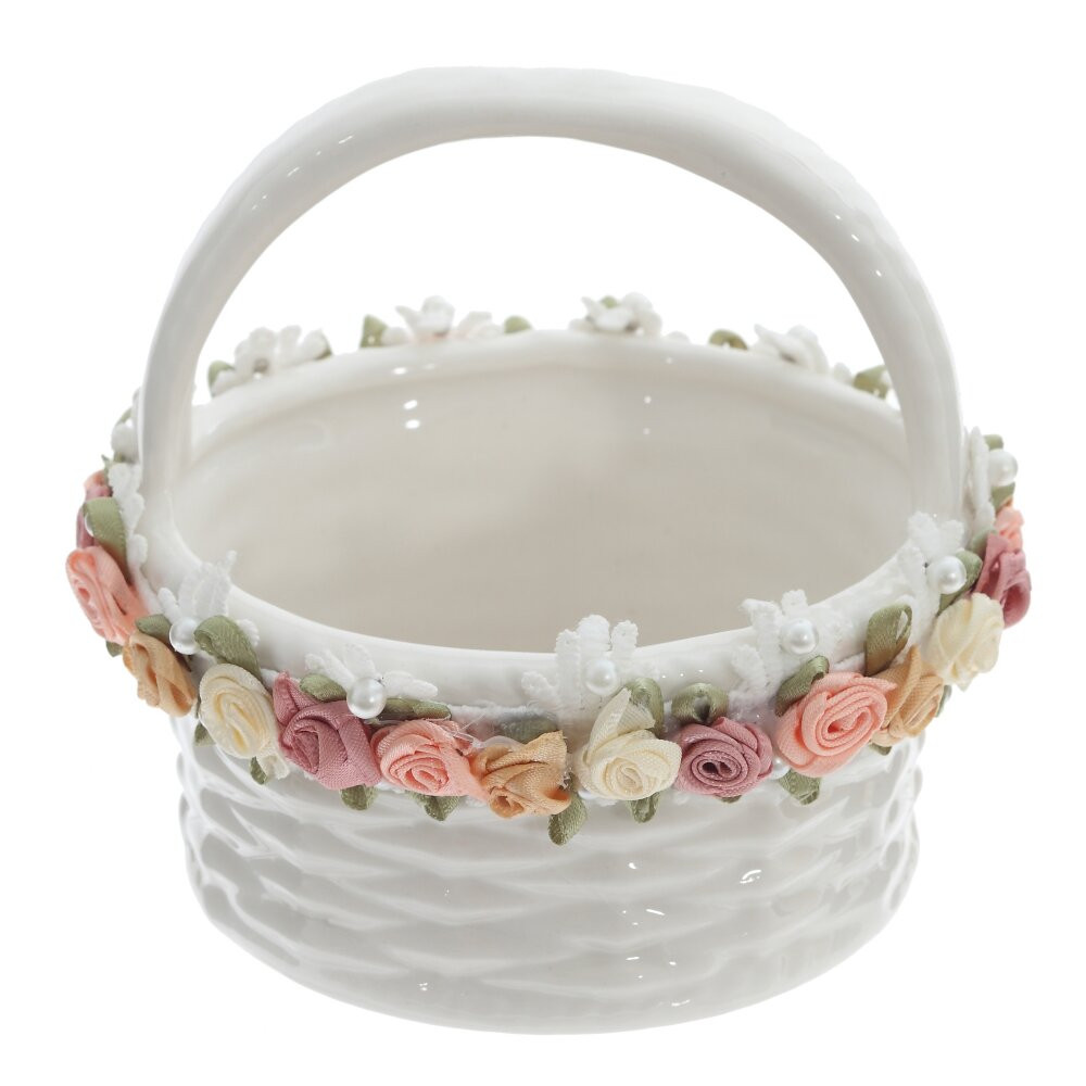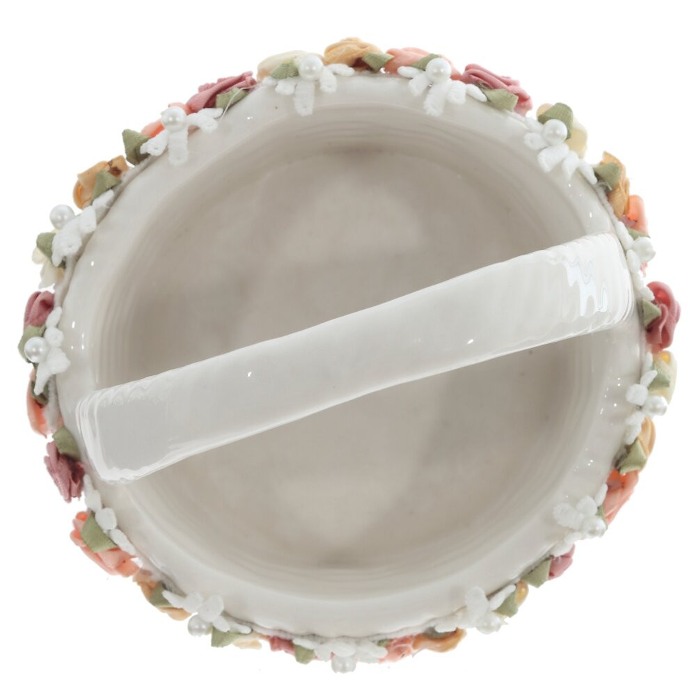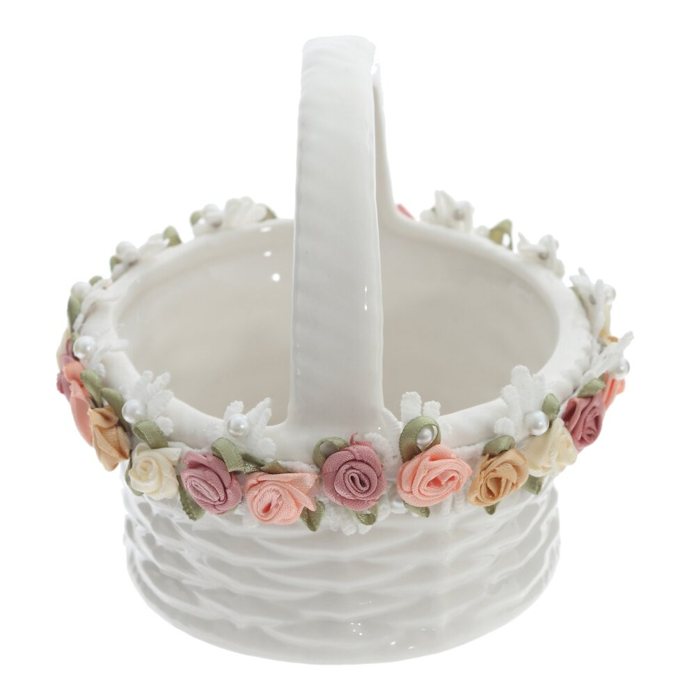 Изящная пасхальная конфетница в форме корзинки из высококачественного фарфора объёмом 260 мл создаст особое настроение праздничного стола. Белоснежная поверхность стилизована под плетение, а по краю идёт декоративный бордюр из миниатюрных текстильных роз в нежных пастельных оттенках, дополненных бусинами «жемчуг». Удобная ручка позволяет легко переносить корзинку и эффектно подавать гостям пасхальные яйца, шоколадные фигурки, драже или небольшое печенье. Фарфор не впитывает запахи, хорошо моется и надолго сохраняет безупречный внешний вид. Такая конфетница станет красивым акцентом сервировки и трогательным подарком к светлому празднику Пасхи.