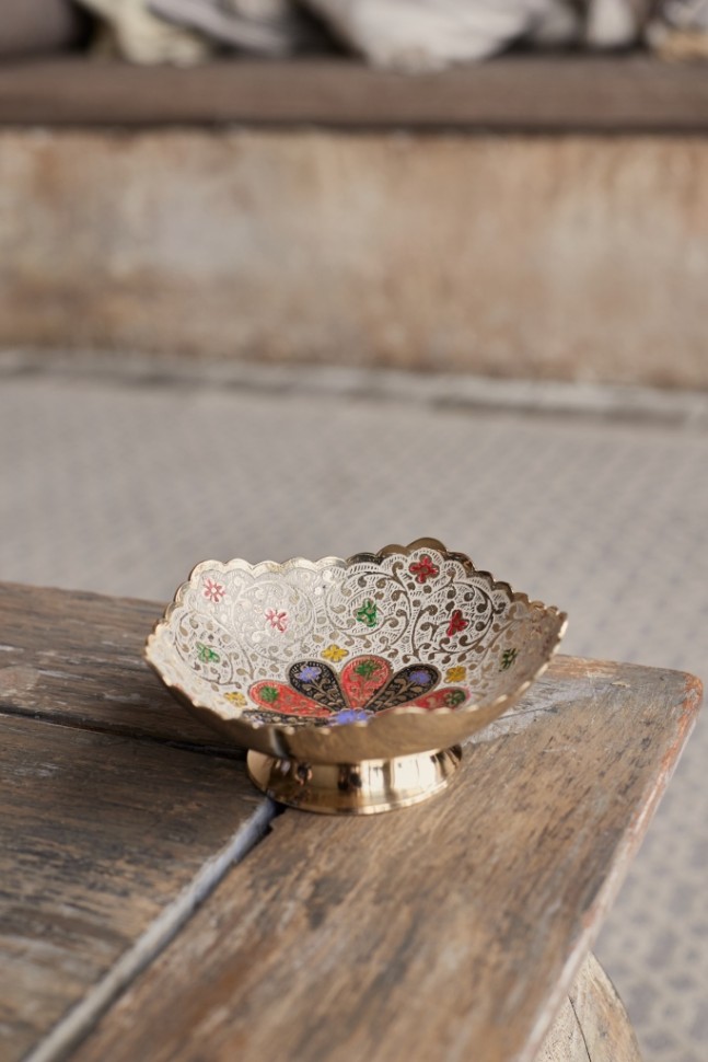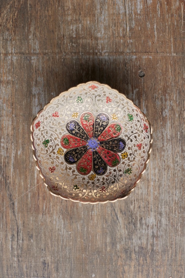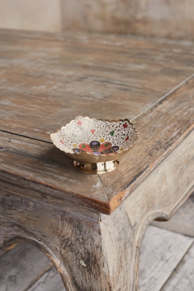 Декоративная конфетница ручной работы, Индия. Белая эмаль придаёт изделию нежный, утончённый вид. Украсит гостиную, кабинет или каминную полку.