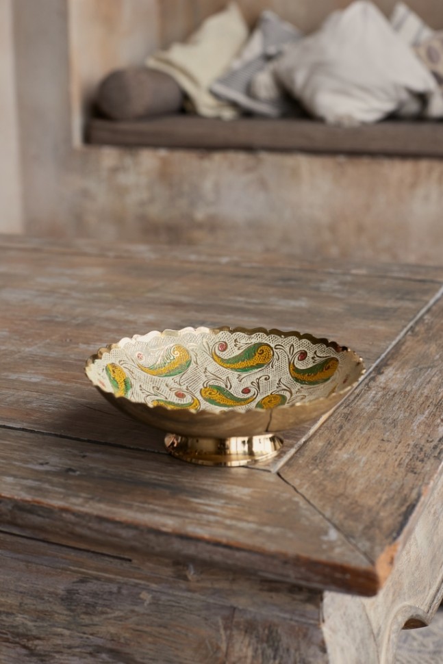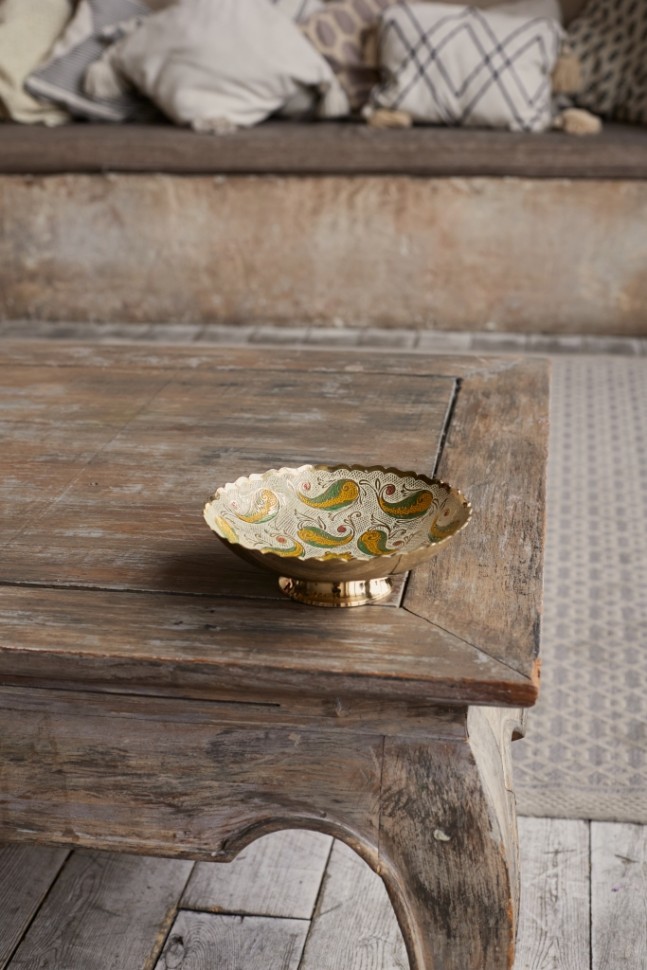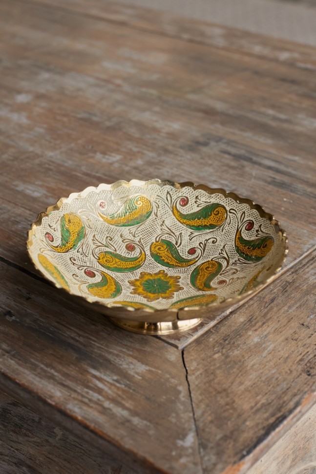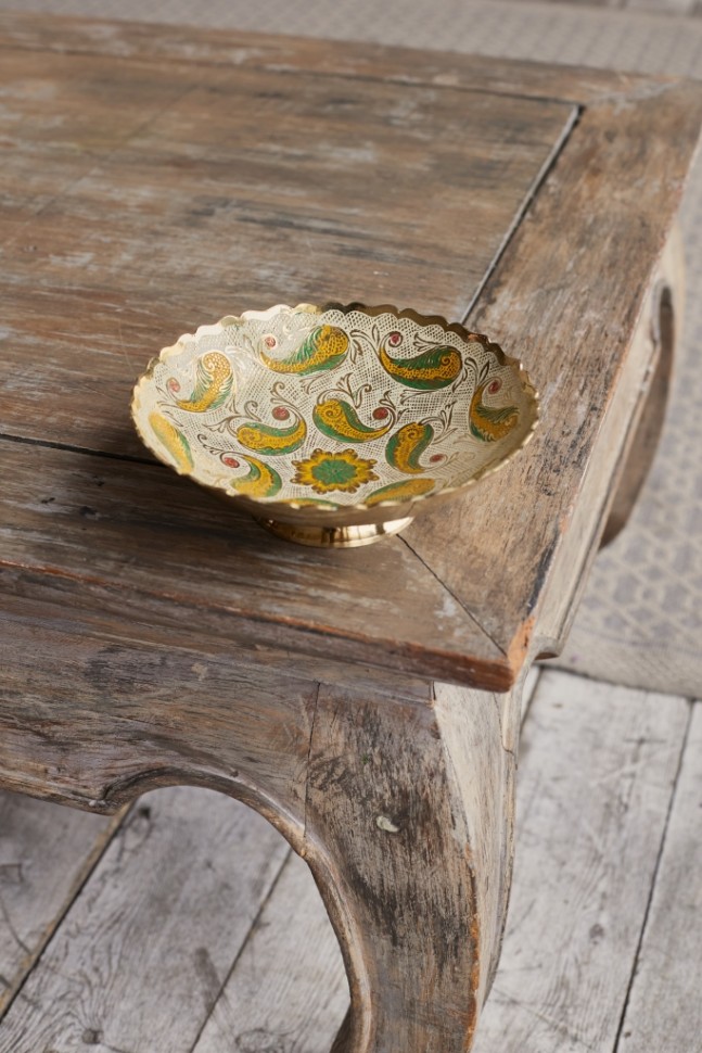 Декоративная конфетница ручной работы, Индия. Белая эмаль придаёт изделию нежный, утончённый вид. Украсит гостиную, кабинет или каминную полку.