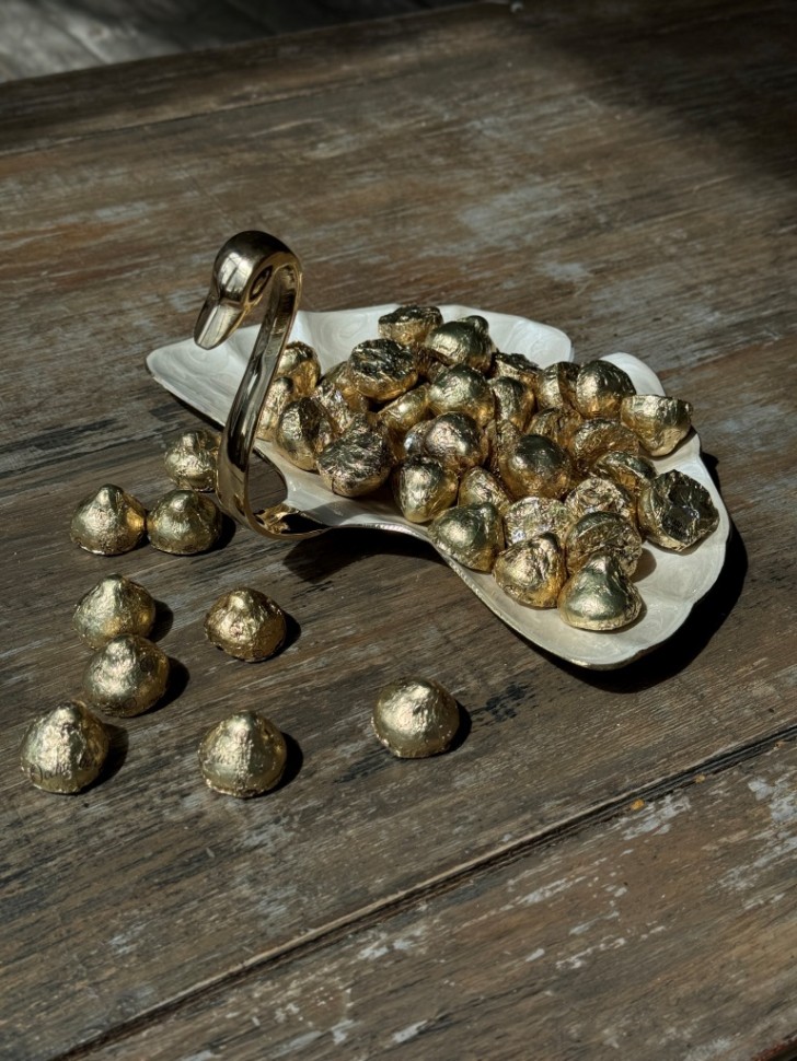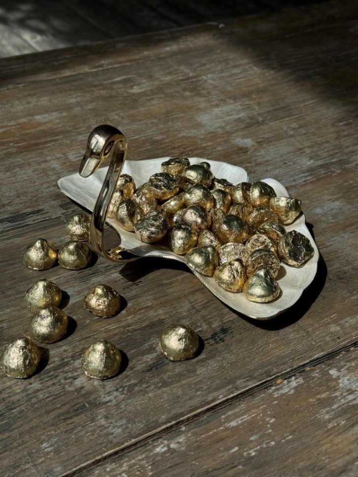 Конфетница из латуни для сервировки стола. Цветная эмаль добавляет яркости традиционному орнаменту. Форма ракушки навеяна морскими мотивами. Подойдёт для интерьера в восточном, этническом или бохо стиле.