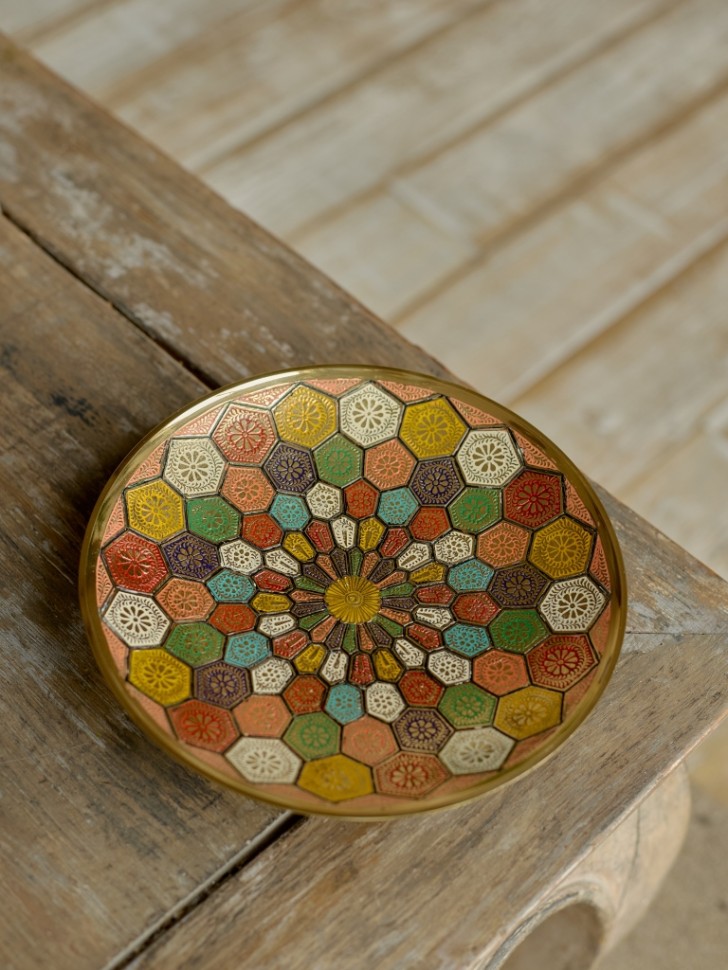 Декоративная конфетница ручной работы, Индия. Цветная эмаль добавляет яркости традиционному орнаменту. Украсит гостиную, кабинет или каминную полку.