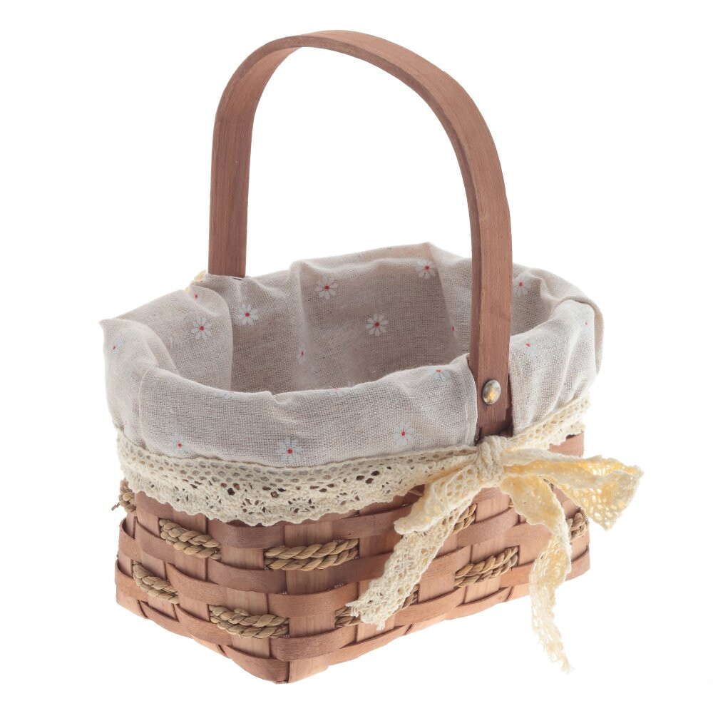 Очаровательная декоративная корзина с плотным плетением. Внутренняя часть оформлена текстильной вставкой из светлой ткани с мелким цветочным узором, что придаёт изделию уютный, деревенский шарм. Вставка украшена кружевной тесьмой и бантом. Удобная деревянная ручка надёжно закреплена прочными металлическими креплениями. Корзина подойдёт для хранения мелочей, косметики, рукодельных принадлежностей или оформления подарков и фотозон. Стильный и практичный аксессуар для дома, дачи или праздников.
