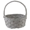 Классическая плетёная корзина серого цвета. Она изготовлена из натуральных материалов - лозы , ивовых прутьев, что придаёт ей особую прочность и лёгкость одновременно. Корзина имеет округлую форму и снабжена удобной ручкой, также выполненной из плетёных прутьев, что облегчает переноску. Такие корзины традиционно используются для сбора фруктов, овощей, ягод, а также для пикников или хранения различных домашних вещей. Благодаря своему натуральному и лаконичному дизайну она хорошо вписывается в интерьер дачи или загородного дома. Корзины подобного типа часто используются и в декоративных целях – для создания цветочных композиций, подарочных наборов, тематических фотосессий. Плетёные корзины высоко ценятся за экологичность, долговечность и эстетичный внешний вид, а также за то, что они создают атмосферу уюта и тепла в любом доме.