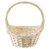 Классическая плетёная корзина светлого цвета. Она изготовлена из натуральных материалов, лозы, ивовых прутьев, что придаёт ей особую прочность и лёгкость одновременно. Корзина имеет округлую форму и снабжена удобной ручкой, также выполненной из плетёных прутьев, что облегчает переноску. Такие корзины традиционно используются для сбора фруктов, овощей, ягод, а также для пикников или хранения различных домашних вещей. Благодаря своему натуральному и лаконичному дизайну она хорошо вписывается в интерьер дачи или загородного дома. Корзины подобного типа часто используются и в декоративных целях – для создания цветочных композиций, подарочных наборов, тематических фотосессий. Плетёные корзины высоко ценятся за экологичность, долговечность и эстетичный внешний вид, а также за то, что они создают атмосферу уюта и тепла в любом доме.