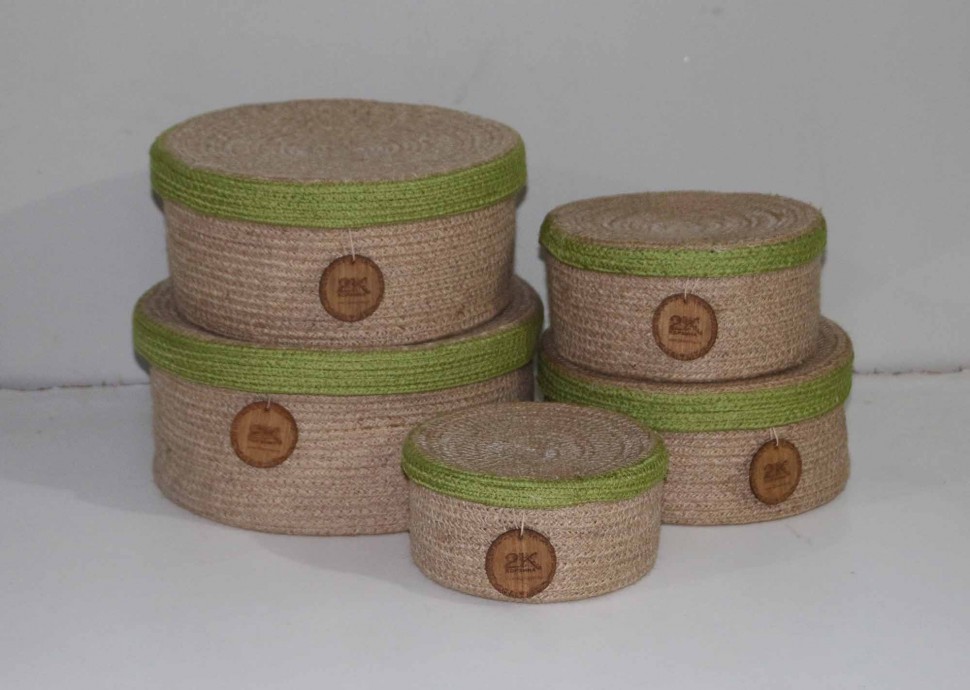 Корзина круглая плетеная из джутовой веревки. Такая корзина пригодится для хранения и транспортировки различных предметов, или как декоративный элемент интерьера. Все корзины выполнены из экологически чистого и безопасного материала, который не воздействует на продукты.