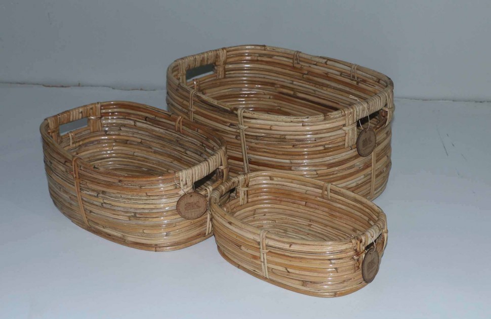 Корзина овальная плетеная из тростника. Такая корзина пригодится для хранения и транспортировки различных предметов, или как декоративный элемент интерьера. Все корзины выполнены из экологически чистого и безопасного материала, который не воздействует на продукты.