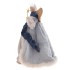 Голова и руки, изготовленные из полимерных материалов, поражают своей утонченностью и выразительностью. Прическа украшена нежным белым пухом,а шикарное голубое меховое платье дополнено золотым поясом и синей накидкой, придающей образу легкость и благородство. Нижняя часть куклы, сделанная из пластикового конуса, обеспечивает идеальную форму платью и стабильность фигурки.