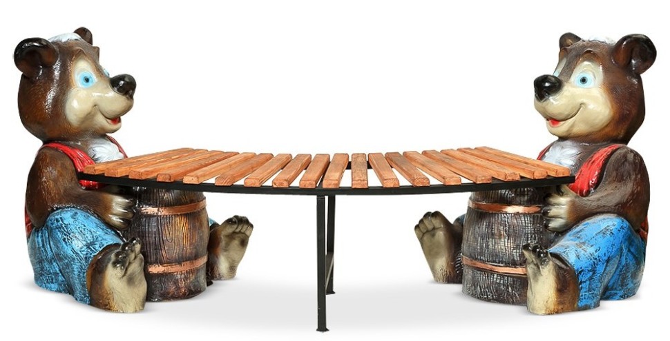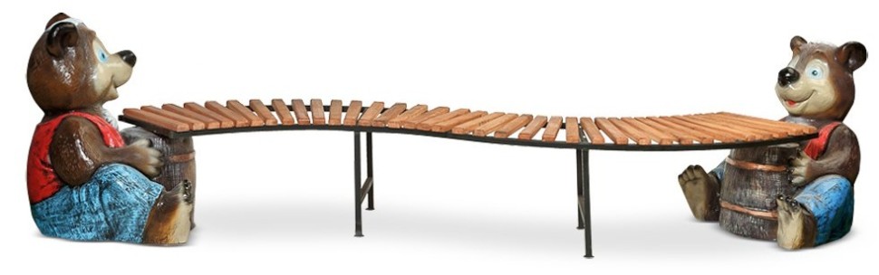 Необычная детская лавочка, украшенная фигурками медведей. Лавочка станет интересным украшением, которое придаст изюминку вашей даче, саду, частной территории или загородному дому.