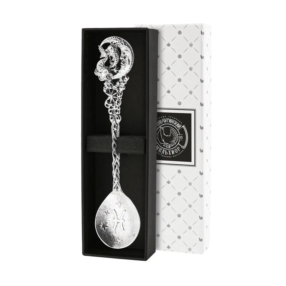 Ложка чайная "Зодиак-Рыбы" латунь посеребренная с чернением