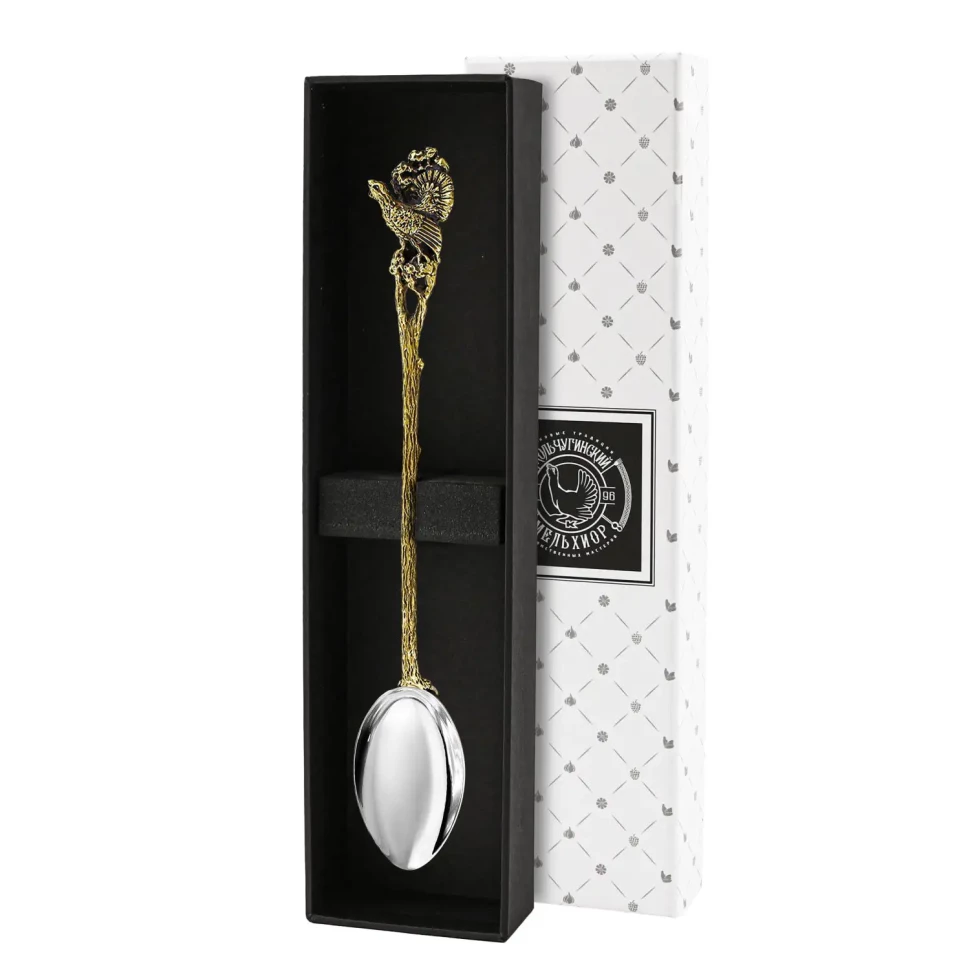 Ложка д/размешивания кофе "Глухарь'" латунная с посеребренным яблочком