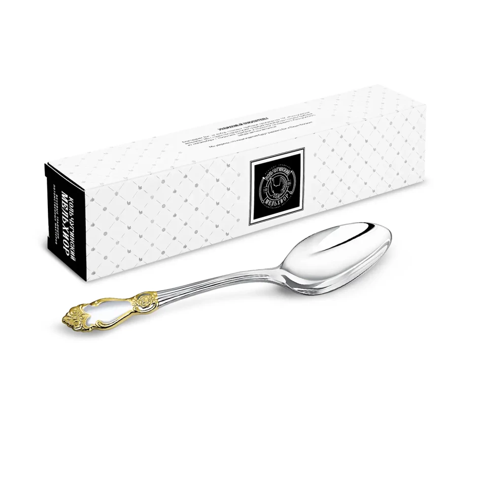 Ложка столовая "Серебряная роза" позолоченный рисунок