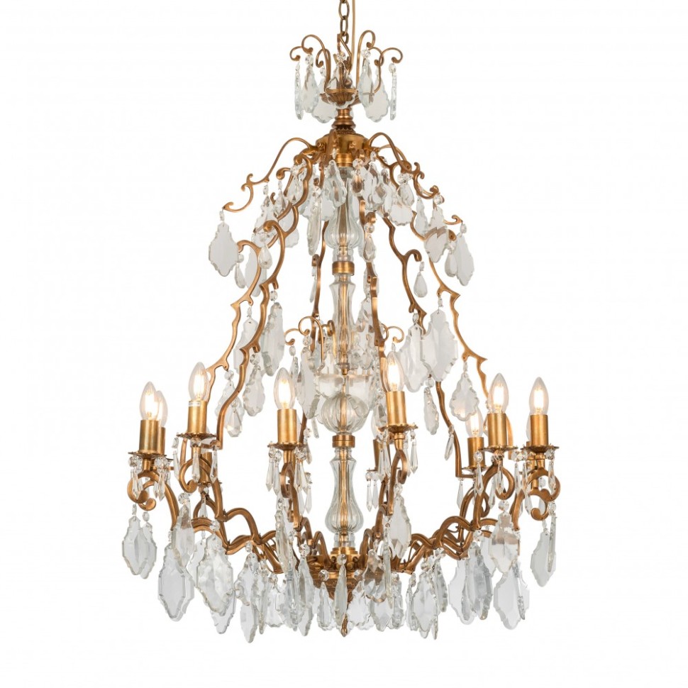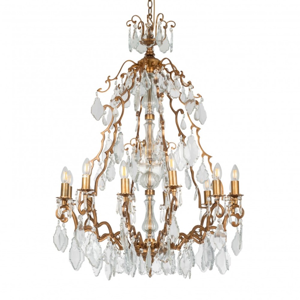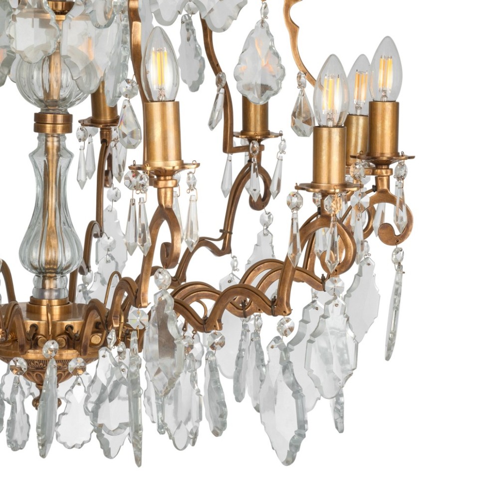 Люстра латунная со стеклянными подвесками